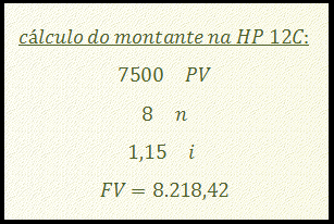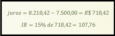 Com o montante, calculamos o valor dos juros da operação (montante - principal), que servirá de base para o IR: