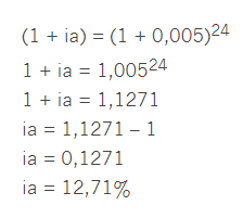 Calcule os juros acumulados durante 2 anos referentes a uma taxa mensal de 0,5%. 0,5% = 0,5 / 100 = 0,005