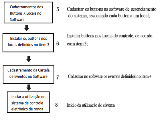 Para a melhor compreensão do sistema de controle eletrônico de rondas, a seguir estaremos apresentando um desenho (diagrama de blocos) com a seqüência de tarefas que deverão ser executadas para sua implantação.