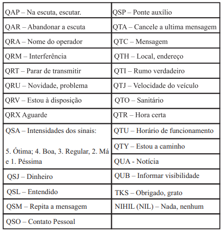 Regras a serem observadas na Radiocomunicação:Fazer as transmissões tão breves quanto possível, com o máximo de abreviações (uso do código Q), de forma a ocupar a freqüência ou o canal por um mínimo de tempo possível;