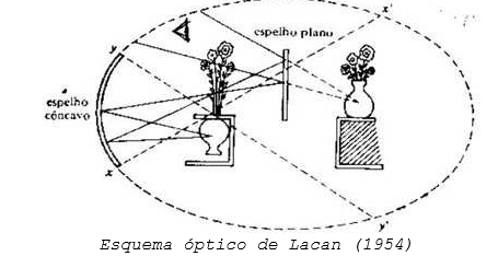 Então, uma síntese da leitura do esquema óptico poderia ser: o sujeito se mira no ideal de eu (espelho plano), de modo que esse espelho faz função do outro como lugar simbólico. É através dessa tela do espelho plano que o eu pode se reconhecer na imagem do outro, pode se projetar (sua imagem) numa relação que pode ser lida como projeção de um eu ideal. “Simbólico sustentando o
