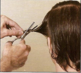 2.Iniciar pela parte de trás.Elevar a seção a 45º e cortar cerca de 4 cm. Essa será a mecha-guia.