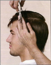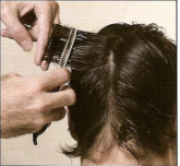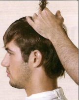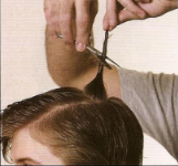 5. Para o topo,repetir o que foi feito na lateral,torcendo a mecha antes de cortar.