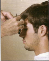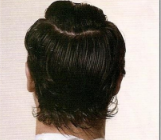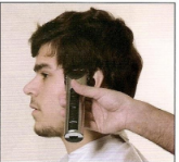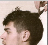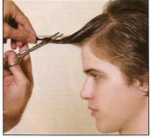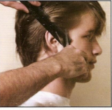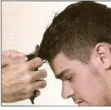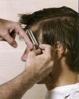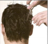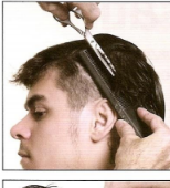 1.Com o cabelo seco,passar a máquina 2 na região da costeleta e na zona acima da orelha.Lavar com xampu e condicionador.