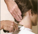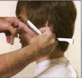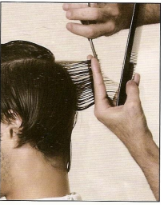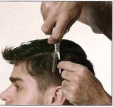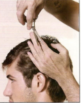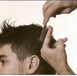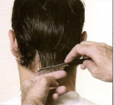 2.Com a navalha,construir o corte na nuca alta, de modo a dar leveza.