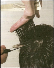 5.Desbastar a parte superior ,evitando reduzir o comprimento.