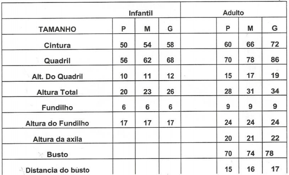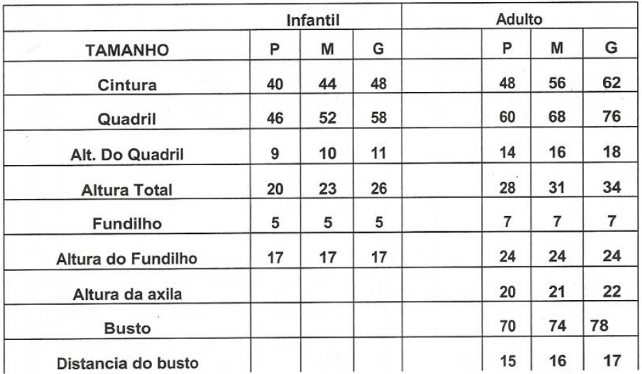 Tabela de medidas para malha