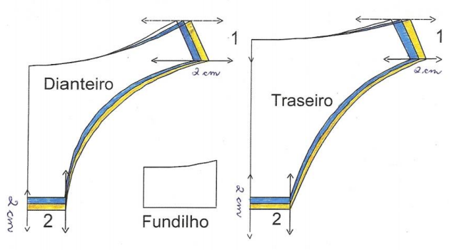 - Não acrescente margem de costura se for aplica viés na galoneira.