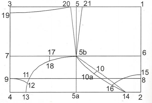 - 10a = 1,5 cm no esquadro (unir os pontos 14, 10a e 5b em curva)