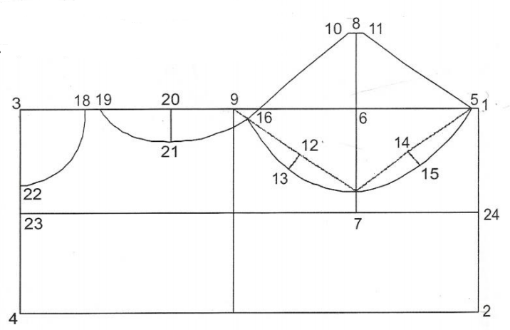 - 1 - 3 = metade do busto (1-3-4-2 unir fazendo um retângulo)