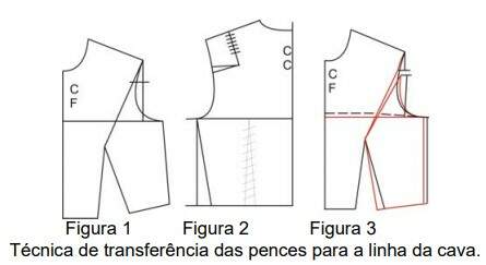 As figuras 1, 2 e 3 mostram a técnica de transferência das pences para a linha da cava.