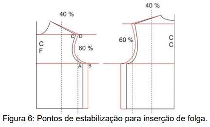 Para obter a base relaxada e ampla, primeiramente, há a necessidade da aplicação da técnica de eliminação da pence do busto, bem como a aplicação da técnica de introdução de folga para permitir que a peça se afaste do corpo.