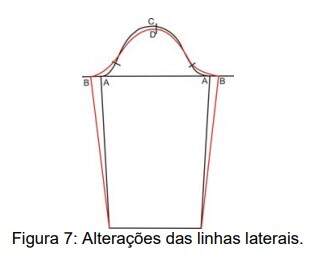Nesse caso a alteração da manga se dará somente nas linhas laterais e na altura da cabeça da manga (Figura 7).