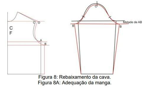 No caso de haver rebaixamento da cava nos blocos do corpo a adequação do bloco da manga deve seguir a técnica específica compatibilizando os blocos sem prejudicar os movimentos.