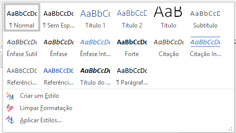 O Word vem com vários estilos prontos para você usar, o que facilita muito nosso trabalho de formatação, além de garantir um padrão ao longo de nosso texto. A hierarquia de Títulos (Título 1, Título 2 e Título 3) garante a criação automática de um sumário como aquele que aparece no início de nossas apostilas.