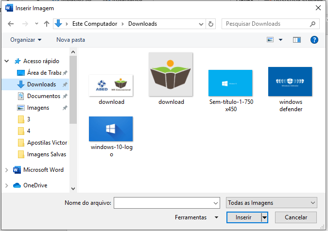 Teremos acesso a uma tela de navegação que nos permitirá escolher a imagem que será inserida em nosso documento. Escolhida a imagem, basta selecioná-la e clicar no botão inserir para que a mesma seja colocada na posição onde se encontra o cursor.