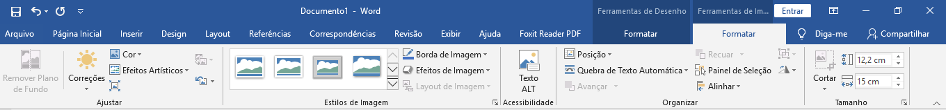 Com a imagem selecionada, vá na guia Formatar >> Ferramentas de Imagem.