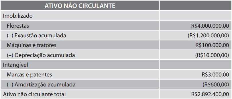 150ha / 500ha = 30% do total de hectares de pinheiros existentes. Assim, o valor da exaustão será o resultado do cálculo da seguinte fórmula: R$4.000.000,00 . 30% = R$1.200.000,00 de exaustão no ano.
