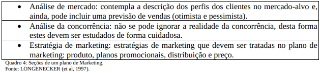 Por fim, toma-se o modelo de Longenecker et al (1997) que recomenda as seções que devem compor o plano de marketing:
