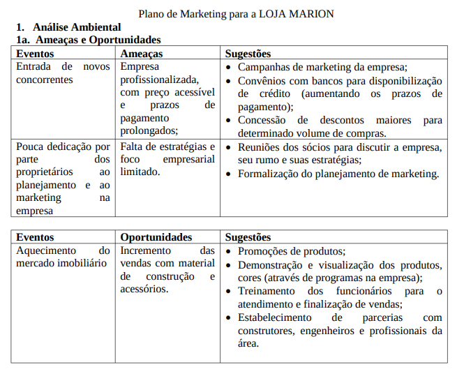 4 O CENÁRIO ESTRATÉGICO PARA A EMPRESA LOJA MARION E A PROPOSTA DE PLANO DE MARKETING