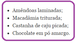 • 175 gramas de chocolate amargo (com 70% de cacau);