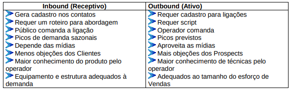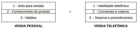 3 - Sistema e procedimentos: enquanto na venda pessoal, o vendedor é que se organiza, na venda por tmkt, o operador terá um sistema que o ajudará. A cada contato com o potencial cliente, serão levantadas informações e incluídas no cadastro do cliente, para futuros contatos.