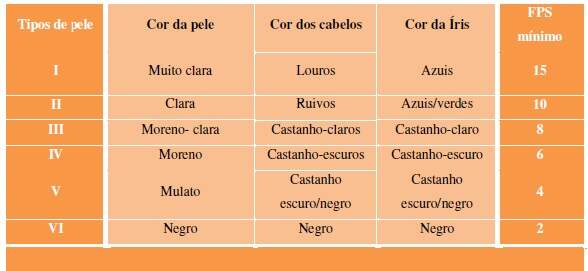 Tabela 1: Fotipos de Pele Segundo Fitzpatrick e Fatores de Proteção Solar (FPS) Indicados para cada Subtipo