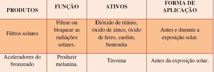 Tabela 2: Comparativo entre os produtos destinados ao bronzeamento seguro.