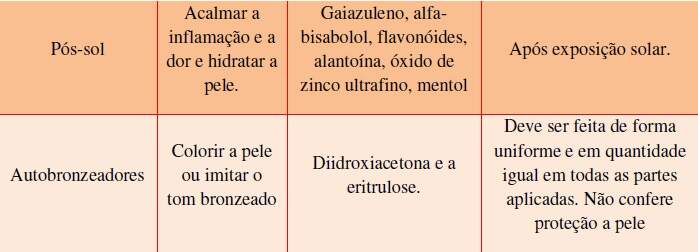 O estudo visou descrever e analisar os diferentes produtos solares como filtros solares, autobronzeadores, aceleradores, e pós-sol, avaliando os princípios ativos utilizados relacionando o mecanismo de ação, visto que estes produtos apresentam um apelo de serem uma forma segura e eficiente na busca pelo bronzeado perfeito, e ainda levando em consideração o processo natural de pigmentação da pele. Para isto faz-se necessário a abordagem de alguns tópicos.