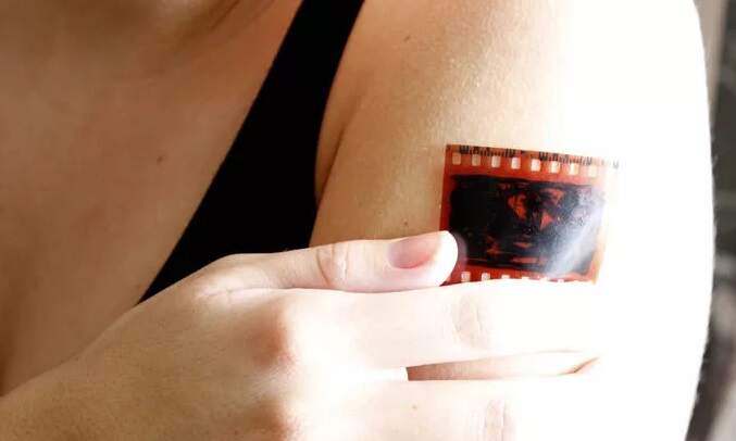 Deixe os raios ultravioleta penetrarem através do filme negativo. Quando você tirar o filme a foto estará impressa na sua pele.