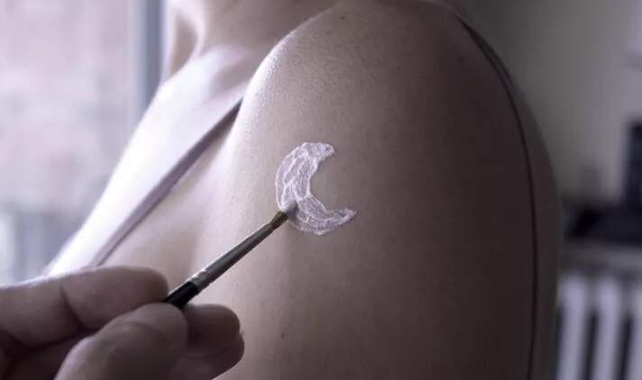 Faça o desenho diretamente sobre a pele usando os dedos ou um pincel, porém pode ser difícil fazer essa aplicação com precisão.