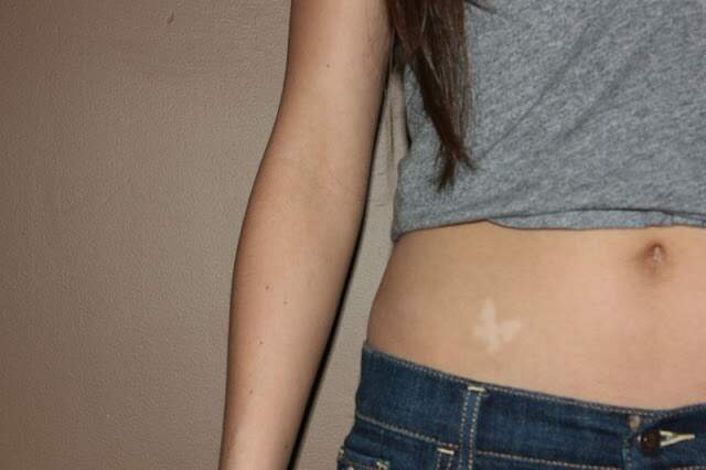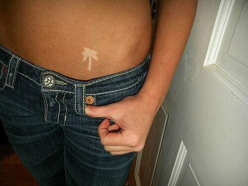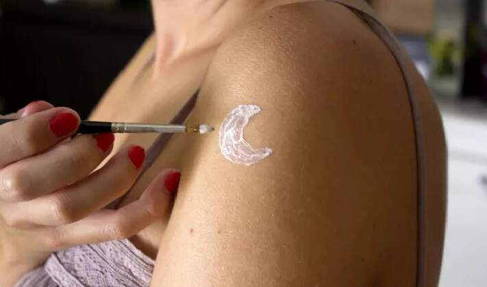 Antes de se expor ao sol ou entrar em uma cabine de bronzeamento, passe o filtro solar na pele no formato do desenho desejado.