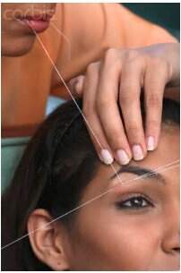 A “depiladora” entrelaça dois fios de algodão e os segura com ambas as mãos. Ela coloca um dos fios na boca e puxa o fio quando quer arrancar um pelo. O que remove o pelo é na verdade a junção dos dois quando puxados de forma rápida e precisa. Entenderam? Imagino que não….Acho que vai ficar mais fácil entender quando olharem a foto abaixo: