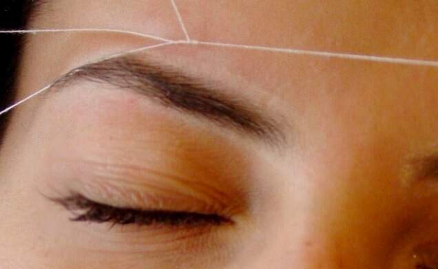 A depiladora segura um fio de algodão e enrola ao redor do seu dedo, a outra extremidade na outra mão e agarra o meio com os seus dentes. Por este motivo ela fica bem perto de seu rosto e você deve esticar a pele (testa e pálpebra), caso contrário, ela pode beliscar a sua pele com o fio.