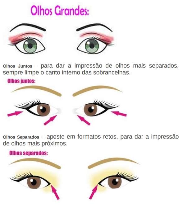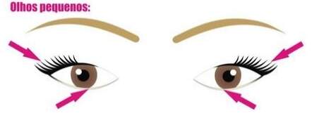 Olhos Pequenos – manter sempre a parte de baixo da sobrancelha limpa e epilada, para levantar o olhar.