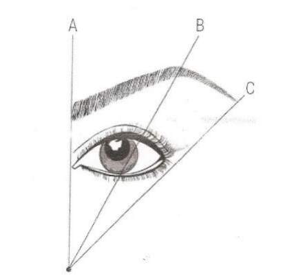 Passo 3 – para marcar o centro da sobrancelha (onde a sobrancelha deve estar mais arqueada/levantada), devemos fazer uma linha iniciando pela aba do nariz, e finalizando na parte mais alta da sobrancelha. Outra maneira de descobrir a parte arqueada da sobrancelha é olhar reto para algum ponto, e com o auxílio do lápis ou régua, iniciar pela aba do nariz, cruzando a íris do olho e encontrar o ponto mais alto.