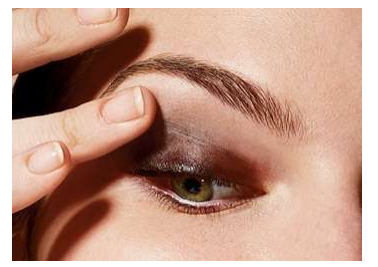 Após passar a sombra marrom espalhe a sombra por toda a pálpebra com os dedos.
