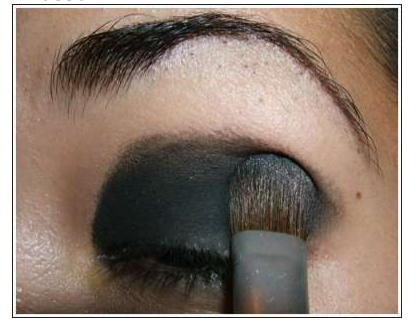 Com a ajuda de um pincel plano utilize um pouco da sombra preta pastosa em toda a pálpebra.
