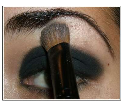 Aplique uma sombra mais clara bem rente à sobrancelha para iluminar o olhar e desça um pouquinho com o pincel para não ficar marcado muito a divisão da sombra clara com a escura.