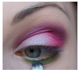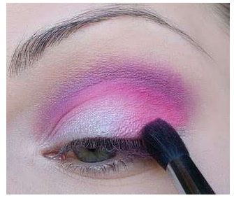 Passe uma sombra rosa embaixo da sombra lilás e esfume.