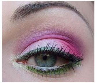 • 1970: Sombras coloridas como verde, rosa e azul e cílios longos e separados;