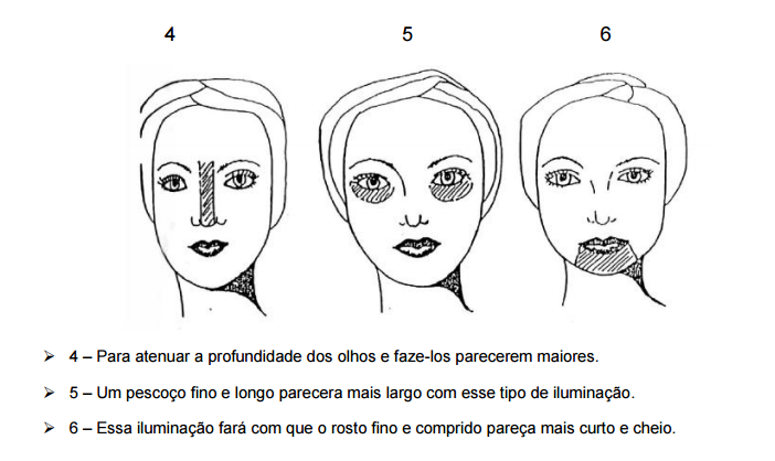 * A iluminação ideal é aquela do tipo camarim, pois a luz que vem de cima gera sombras no rosto.