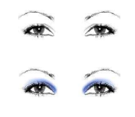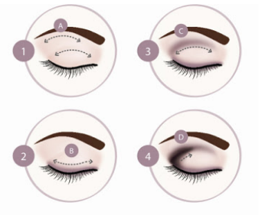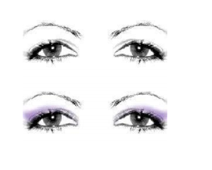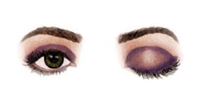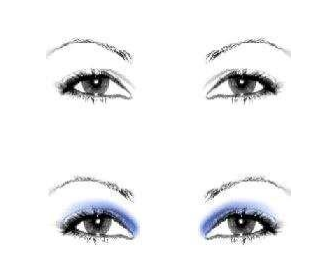 Sombra: Azul escura e marrom podem ser passadas em toda a pálpebra móvel. Para marcar o côncavo, cores claras.