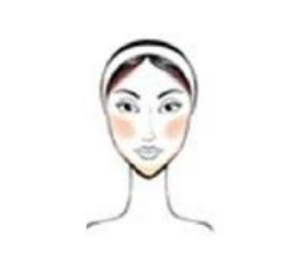 A linha da raiz dos cabelos, o maxilar e o queixo são redondos. É conhecido como o formato “lua cheia”. Para equilibrar aplique uma base dois tons mais escuras nas laterais da testa; aplique a mesma base nas faces (da ponta das orelhas até antes do queixo); o blush deve ser aplicado a parir do meio das faces em direção à ponta superior das orelhas.