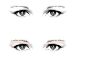 Quando há uma distância grande entre os olhos, a maquiagem pode criar a ilusão de proximidade. O segredo está em reforçar o canto interno dos olhos com sombra levemente mais escura, pois assim eles parecerão mais próximos. O mesmo para o côncavo, vá do canto interno do olho até no máximo o centro. Se quiser, crie uma “barreira” ótica aplicando sombra mais escura também no canto externo dos olhos, com cuidado para não ultrapassar de maneira nenhuma os limites da pálpebra. Não é aconselhável que se “puxe” olhos de gatinho, pois o efeito irá acentuar mais ainda a distância entre os olhos. Mas reparem que as duas belas moças acima não estão nem aí para isso e preferem usar a maquiagem como bem entenderem, certas vezes de modo a ressaltar ainda mais a distância entre os olhos.