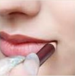 * Faça um belo contorno nos lábios para depois passar o batom.
