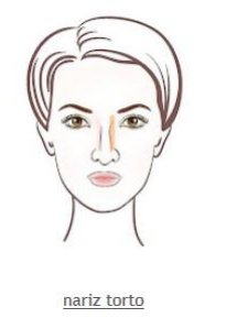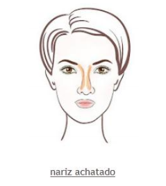 Aplique a base, o pó ou a sombra (opaca), num tom mais escuro que a pele, na parte mais saliente do nariz esfume, no lado oposto aplique uma tonalidade mais clara e esfume.