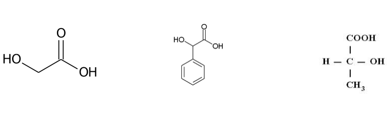 • Alfa-hidroxiácidos – ácido glicólico, ácido mandélico, ácido lático, ácido málico, ácido tartárico, ácido cítrico