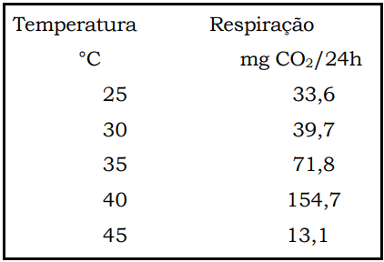 A temperatura é outro fator que afeta a armazenagem de grãos. Juntamente com a umidade, ela é considerada um fator crucial à interação de fatores bióticos e abióticos que promovem a deterioração de grãos. Como o grão é comumente colhido seco ou pode ter seu teor de umidade reduzido a um nível de segurança, este passa a ter um papel menos importante que o da temperatura. Foi estudada a influência da temperatura entre 25°C e 45°C sobre a respiração da soja com alto teor de umidade, 18,5% e sob condições de aeração. A atividade respiratória foi calculada em miligramas de CO2 produzidas por 100 g de matéria seca, durante 24 horas: