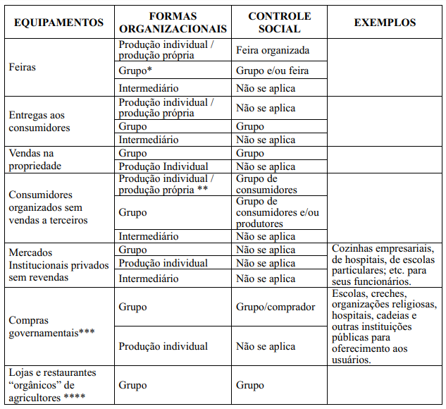 Dessa forma, a venda direta pode ser feita pelo próprio agricultor familiar, por familiar ou por membro da estrutura organizacional (preposto) em que está inserido, pois a garantia perante o consumidor continuará sendo o controle social. Os possíveis canais de comercialização para utilização na venda direta são apresentados no Quadro 1.